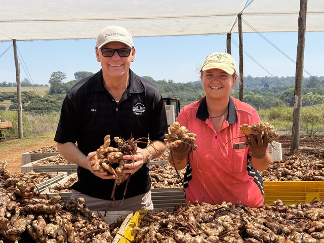 Bill Darby with Sophie Johnston from Dublin, Ireland, working amongst the ginger. 504388_28
