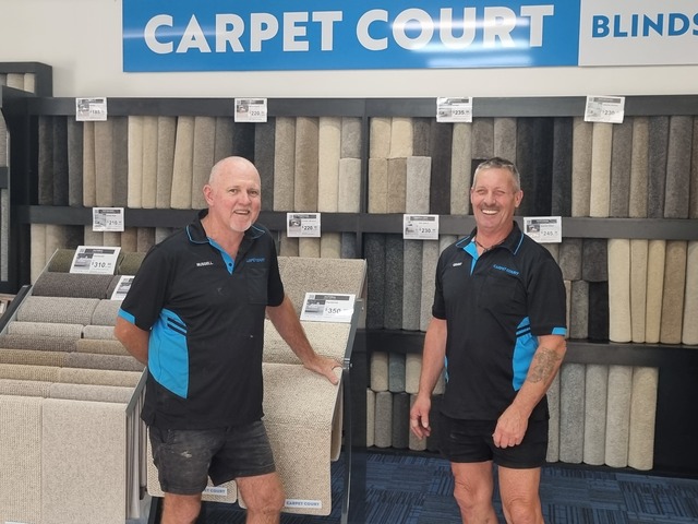 Grant 'Bugsy' Bug (right) with his 'work-wife' Russell Day (left). Grant has been laying carpets for 50 years, and still loves it. Russell has also been on the job for decades, clocking up 45 years of experience. (Donna Jones)