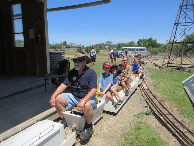 Max Travis drives the miniature train ride, keeping passengers entertained, including Asher Roff, Bentley Algie, Oscar Hannah, Megan Austin, Troy Slade and Scarlett Cowley. (508797_01)