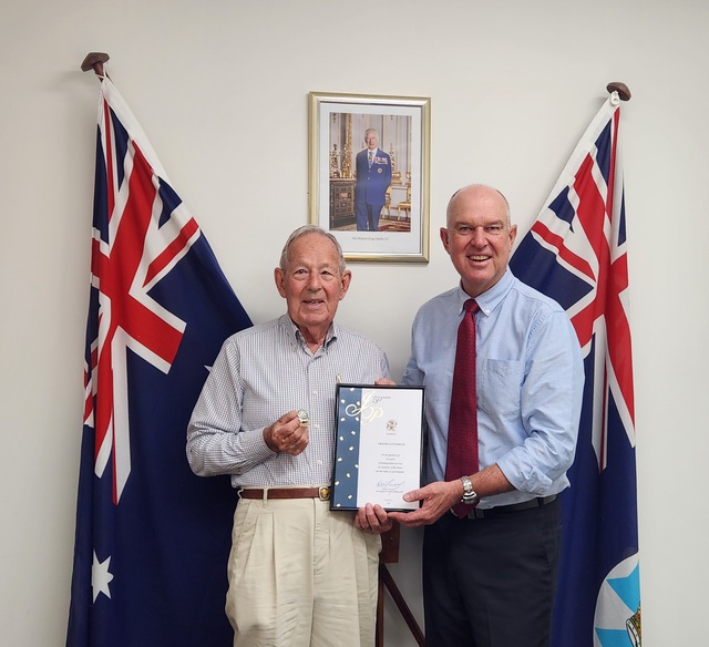 50 years on the front line of the law, Graeme Bryce with Gympie MP Tony Perrett. (Supplied 514453_01)