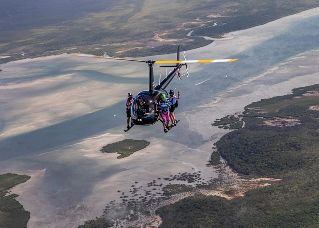 Rainbow ‘tourists’ leap from chopper, on purpose