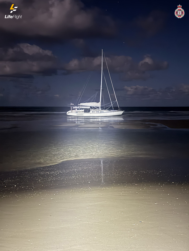 The stranded yacht, found beached near Sandy Cape, on the northern tip of K'gari. (LifeFlight 522874_01)