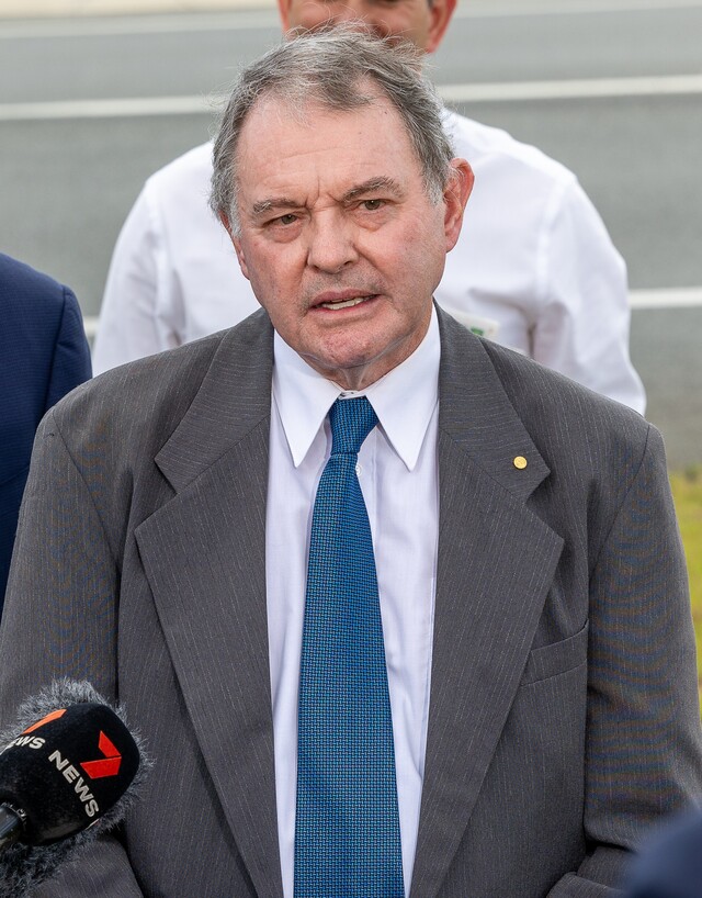 Wayne Sachs ASM OAM speaking to press when Prime Minister Anthony Albanese, the Treasurer Jim Chalmers and Senators Murray Watt and Catherine King came to announce a $9Bn upgrade to Bruce Highway from Gympie north to Cairns. (File)