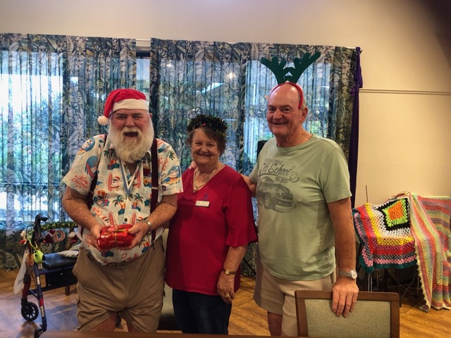 Daryl and Bob enjoyed their morning playing Hoy with the Quota Club's annual Christmas event for the residents of Cooinda Aged Care, recently. (Supplied)