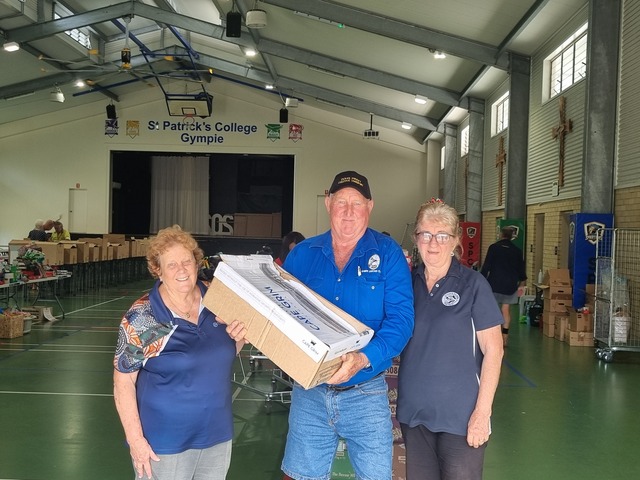 Christmas Hamper coordinator Desley Neale, Gympie Beef Group representative Doug Pratt and Gympie Conference of St Vincent de Paul president Ann Condon. (Donna Jones)