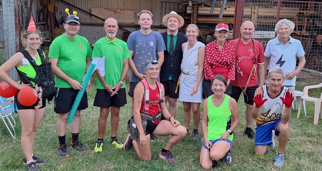 The Gympie Hash House Harriers showed their Melbourne Cup style for their Monday night run, which involved an element of steeplechase through brush and over a creek. (Supplied)
