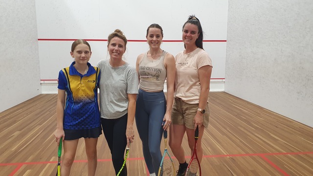 Congratulations to the golden girls of Gold City Steering who took out the C Grade Squash Socks Final on Wednesday night. They are (from left): Laura Wilcox, Teesh Cassar, Bee Scheuber, and Ange Higgins. (Supplied)